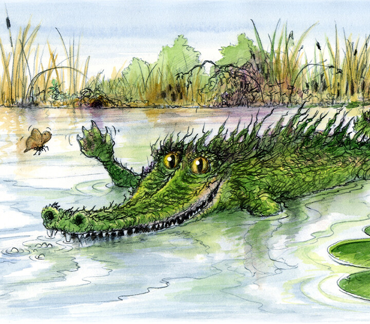 What is that lurking in the darkest corner of the Scaaaaary Lake? Could it be a Thorny Crocklebog? Will it eat you? No! Our Mildred loves handbags, tiaras, and doing synchronised swimming on her own! She’s vegetarian, too, and she wants to be your friend.