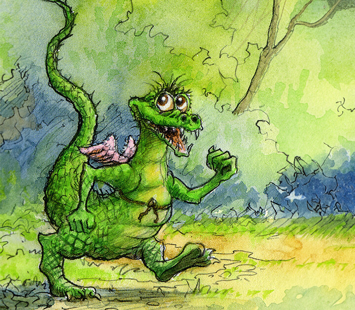Swampy is a Marsh Boggle who loves a bite of Sweetsludge Pie. He’s not all that brave, but still seems to go on an awful lot of adventures. He loves fishing amongst the reeds and bulrushes of the pongy marsh, and he’s not so keen on frightening monsters with scary teeth.
